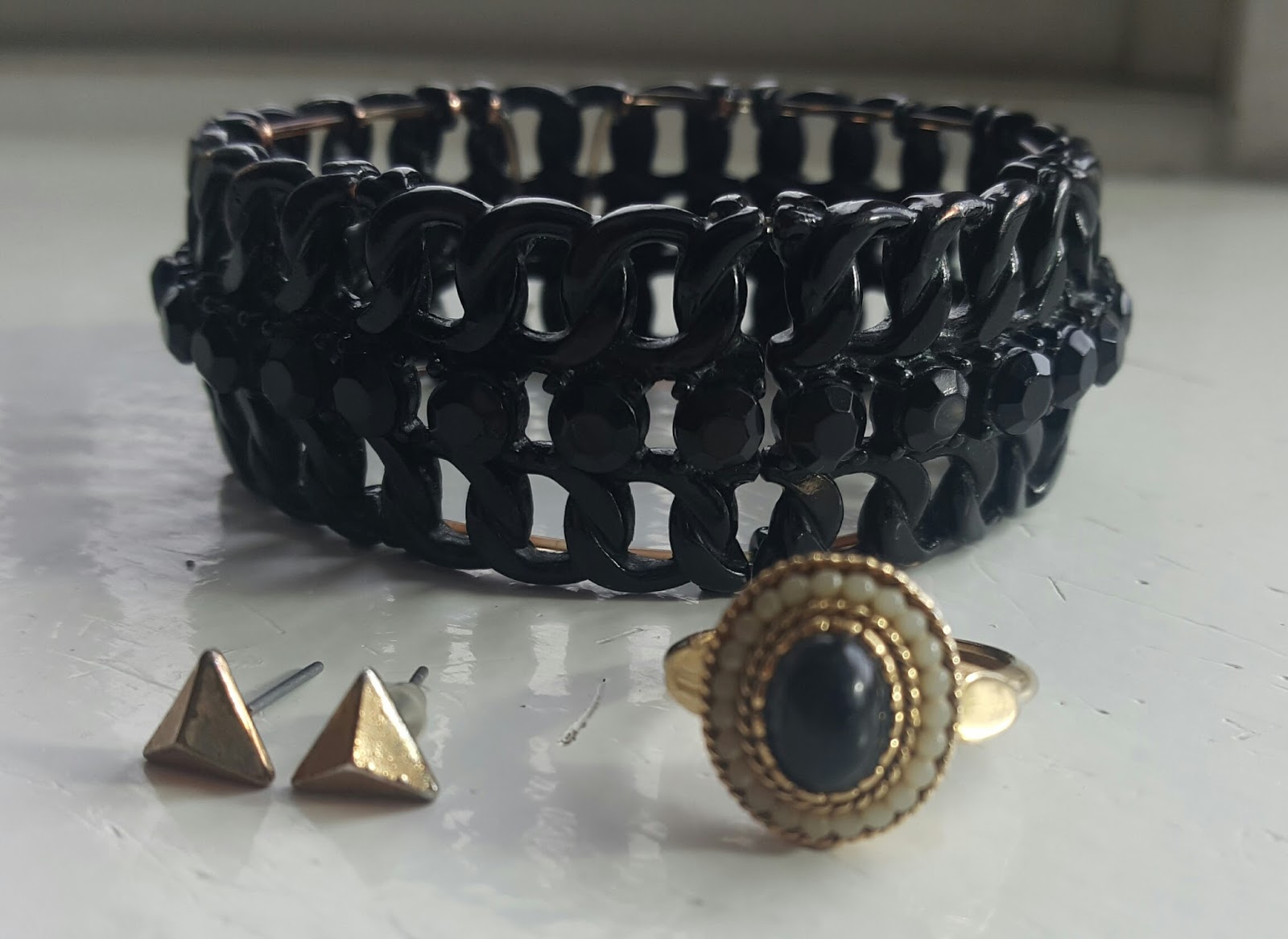From left to right: Burlington Coat Factory, and then two rings from Avon handed down to me from my mom.